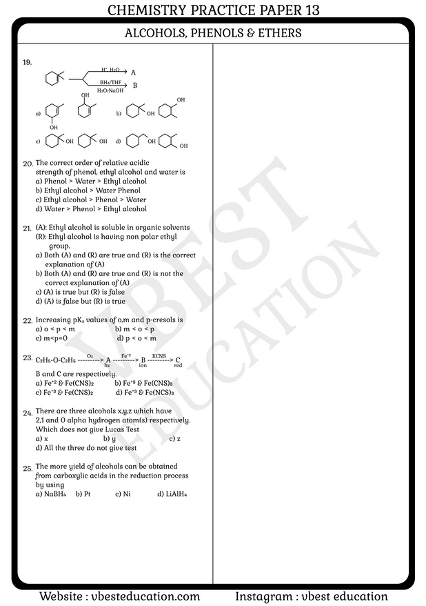 Name of the Chapter: Alcohols, Phenols & Ethers